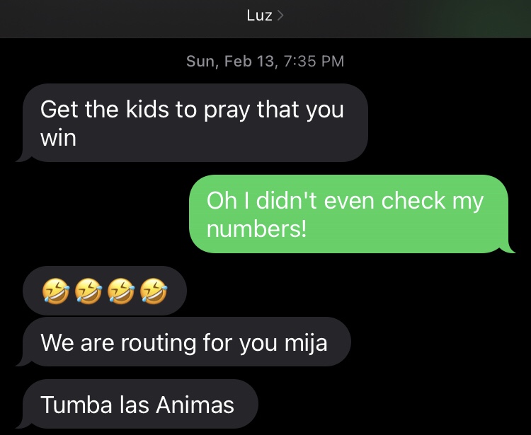During the game, my mom texted me that I was close to winning during the second half.